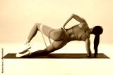 Athletic girl doing clamshell exercise for glutes with resistance band. Fitness woman working out