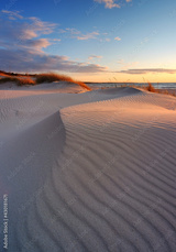 Wydmy na wybrzeżu Morza Bałtyckiego, plaża w Kołobrzegu, Polska.
