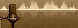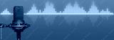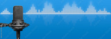 Studio microphone on blue background. Broadcasting radio banner with copy space.