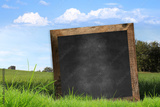 Ardoise dans l'herbe, espace pour du texte, arrière-plan nature et campagne
