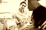 Young female dentist communicating with patient before dental procedure at dentist's office.