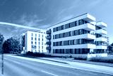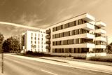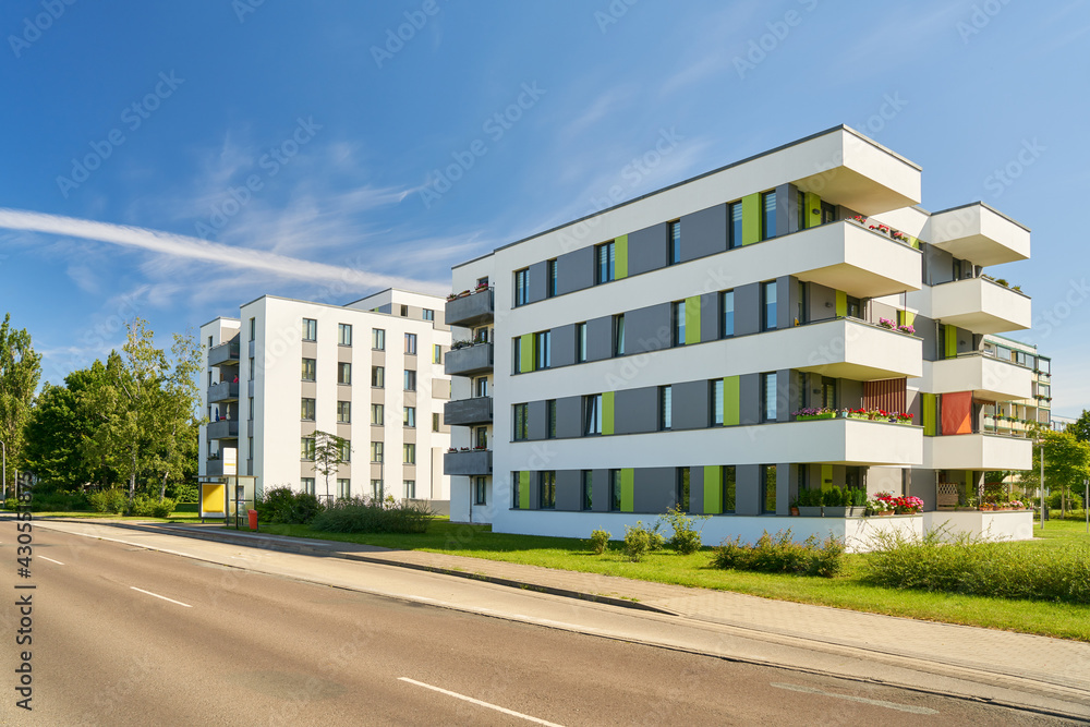 Mehrfamilienhäuser im Wohngebiet neben Straße