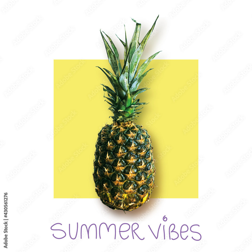Typography slogan poster print with fresh pineapple. Illustration, t-shirt graphic, tee print design. For t-shirt or other uses,T-shirt graphics, textile graphic