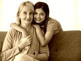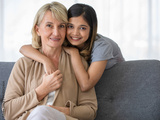 Happy teen girl embracing foster mother