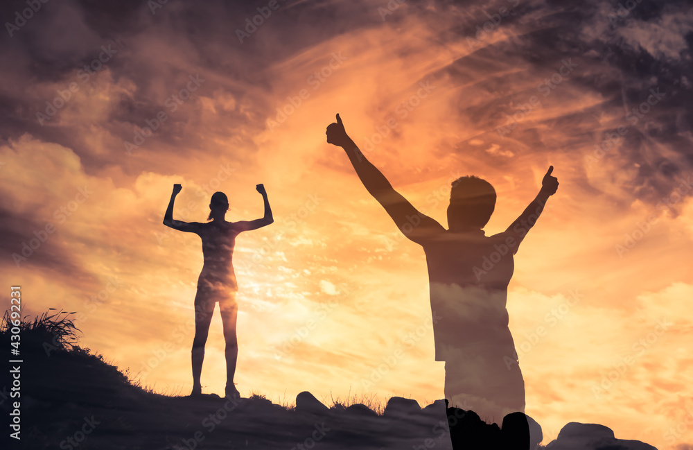 Strong fit healthy man and woman feeling positive, and physically strong. Mind body and spirt concept.