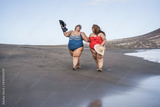 Plus size women walking on the beach having fun during summer vacation - Focus on faces