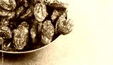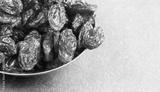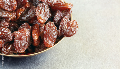 Close up picture of jumbo raisins in a bowl, selective focus.