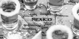 old mexico map with tequila glasses around, selective focus, image in celebration of tequila day
