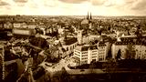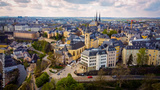 Aerial view over the city of Luxemburg with its beautiful old town district - aerial photography