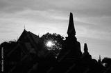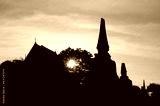 Sun Shining Through the Foliage with Pagoda Ruins Silhouette, Wat Phra Si Sanphet and Old Royal Palace, Ayutthaya Historical Park, Thailand