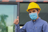 Worker wear face mask working in construction site , Man wear mask protect coronavirus covid19
