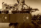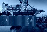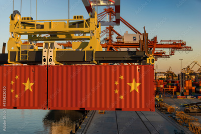 Chinese container with the flag of the People's Republic of China in the port. The concept of Chinese import and export.3D render