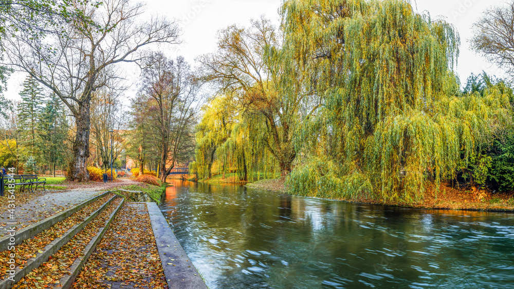 Jesienny wieczór w parku w Olsztynie na Warmii