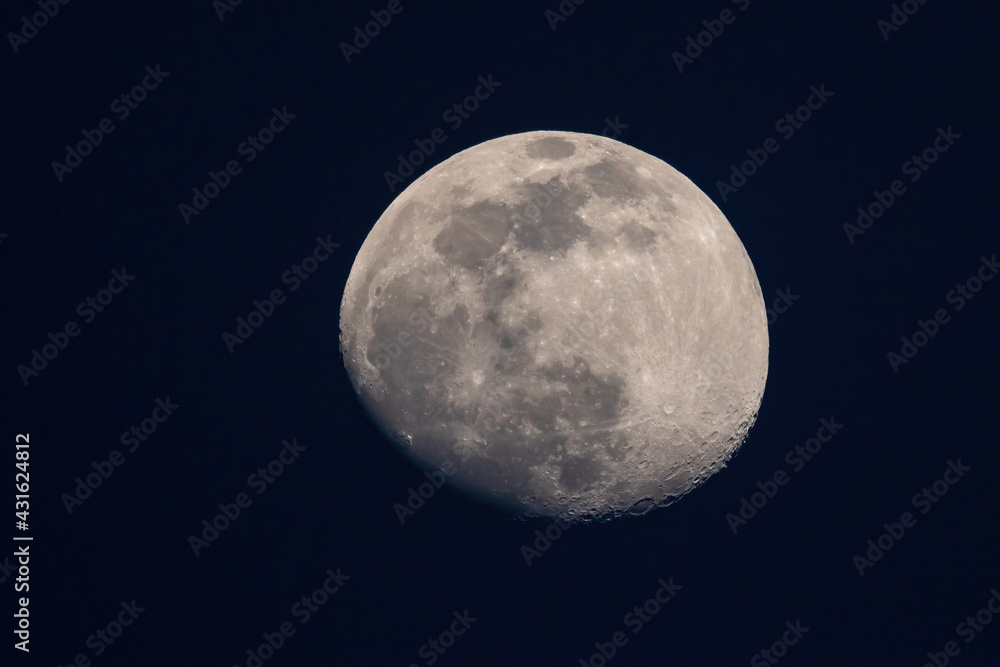 Closeup of a moon isolated on dark blue background