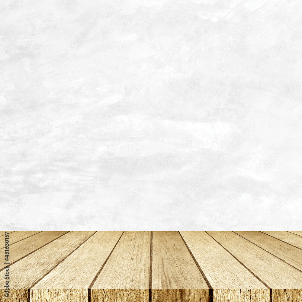 Empty perspective vintage white wood and white cement wall background, room, table top, shelf for product display montage background