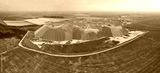 Fertilizer industrial plant. Artificial hills of dumps in production of potash. Ecology problem panoramic aerial view. Extracting mining potassium, mountains of waste ore