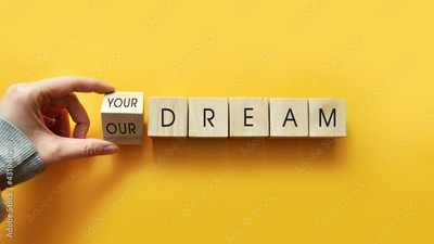 The inscription: "Our or your dream" on wooden cubes. Common or separate dreams of people