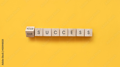 The inscription: "Our or my success" on wooden cubes. Dispute whose merit is in success