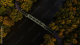 Aerial of Historic Armitage Road Bridge Baltimore through truss bridge - Erie Canal - Autumn Scenery in New York