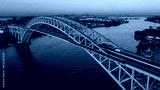 Historic Bayonne Suspended Arch Bridge over Kill Van Kull at Sunset - NJ & NY Route 440 - Bayonne, New Jersey & Staten Island, New York City, New York