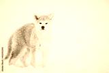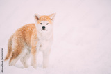 Puppy Of Akita Dog Or Akita Inu, Japanese Akita Standing In Snow At Winter Day. The Akita Is A Large Breed Of Dog Originating From The Mountainous Northern Regions Of Japan.