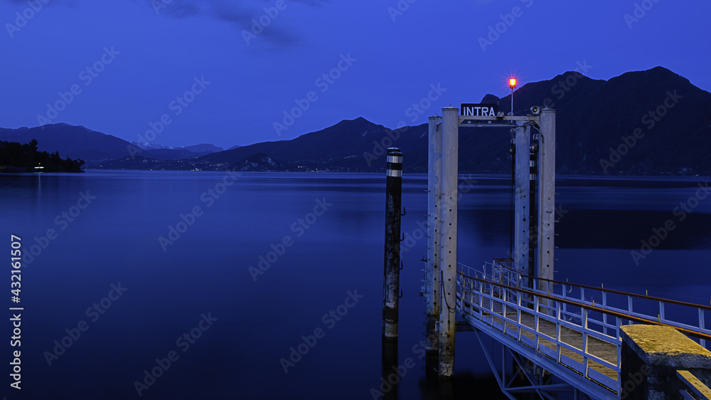 Pontile dell'imbarcadero di Intra, Verbania, Lago Maggiore, Piemonte, Italia.