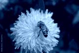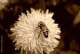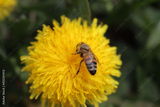 Close-up of Apis mellifera on Taraxacum officinalis flowers. Honey bee on yellow Dandelion flowers on springtime