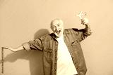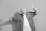 Photo portrait of elder man showing paper plane dreaming about trip on lockdown isolated bright yellow color background