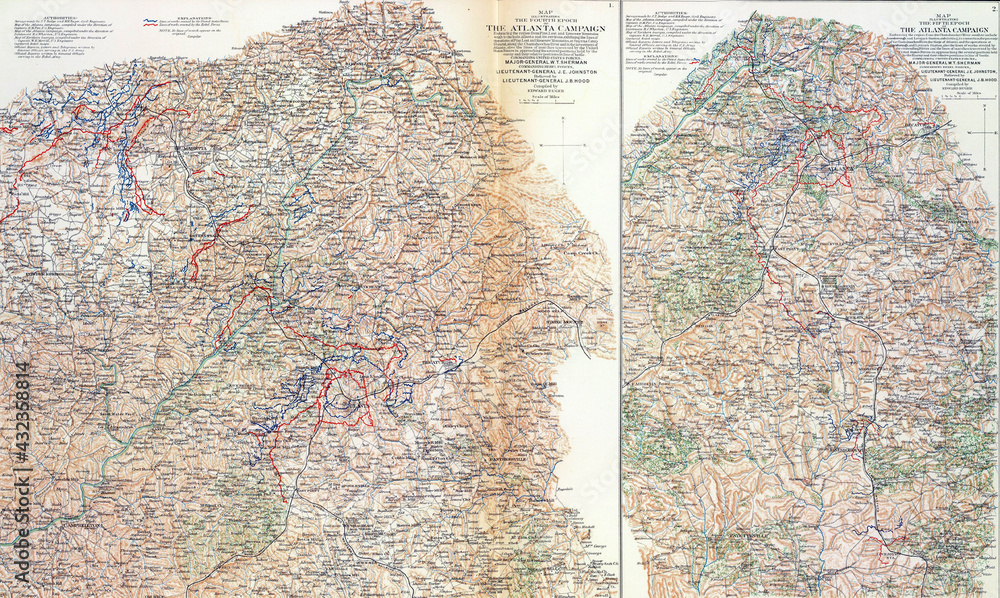 Closeup shot of a map of the battle of Sherman's Campaigns against Atlanta, Georgia in 1864om Atla