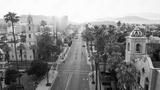 Aerial sunset view of the downtown area of Riverside, California.