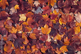 Scattered colorful red, orange and yellow fall maple leaves background. Colors of gold autumn. Seasonal decoration concept.