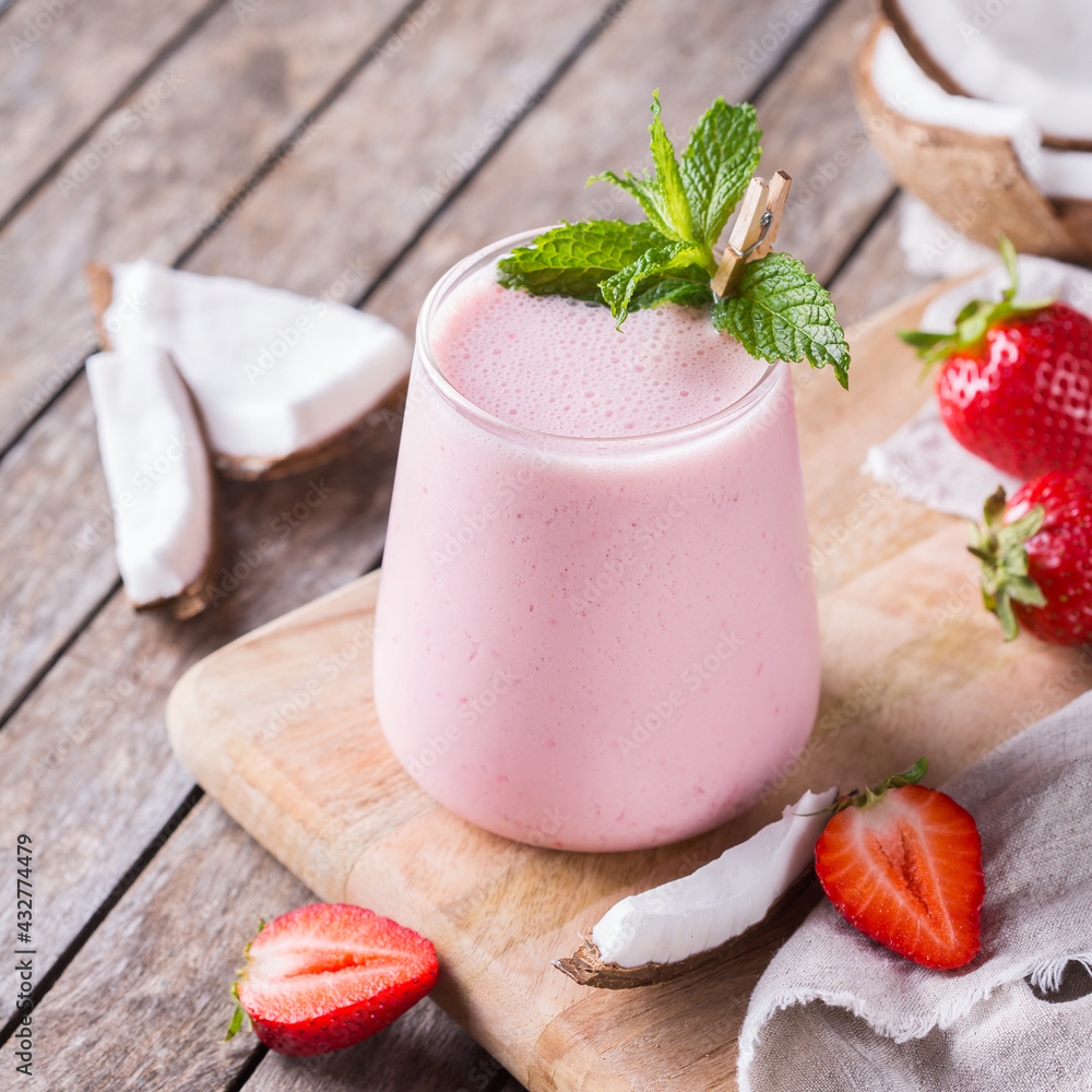 Healthy vegan coconut and strawberry indian lassi