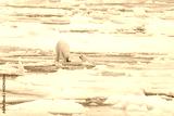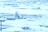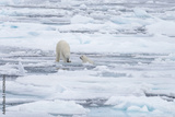 Two young wild polar bears playing on pack ice in Arctic sea, north of Svalbard