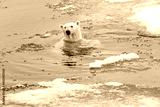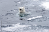 Polar bear (Ursus maritimus) swimming in Arctic sea close up.