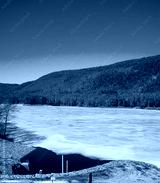 frozen dam pond
