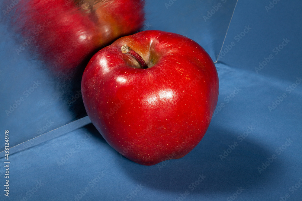mirrored red delicious apple on blue background