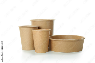 Paper disposable tableware isolated on white background