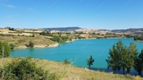 un bonito y tranquilo lago de montañas con agua azul limpia y cielo azul en España