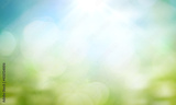 World environment day concept: green grass and blue sky abstract background with bokeh