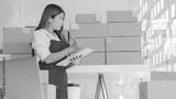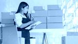 Small business owners working with laptops and telephones, mobile and cardboard boxes at work, small business entrepreneurs, SME working with boxes at home, selling online, e-commerce.
