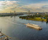 Steamers set off on a river cruise to Valaam from St. Petersburg.
