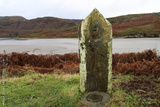 An old survey marker stone near Penrhyndeudraeth, Gwynedd, Wales, UK.