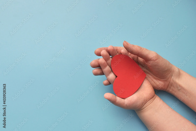 The child and the mother hold a heart in their hands. Mother and child love, love, care and protection in the family