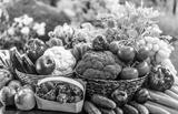 Variety of fresh organic vegetables and fruits in the garden