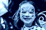 little girl having her face painted for kids party. Halloween or carnival family lifestyle Face painting, headshot close up