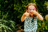 little girl having her face painted for kids party. Halloween or carnival family lifestyle Face painting, headshot close up