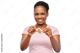 quit smoking and people concept - happy smiling young african american woman braking cigarette over white background