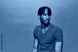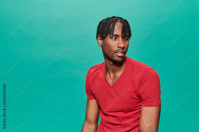 Young Black Wearing a red t-shirt Over A Turquoise Background