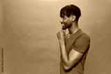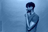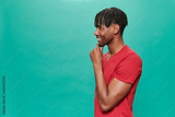 Young Black Wearing a red t-shirt Over A Turquoise Background
