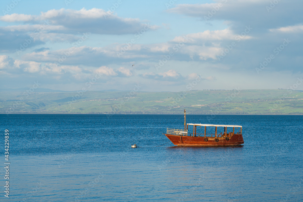 Boat on the sea of galilee, Lake Tiberias, Kinneret, in israel